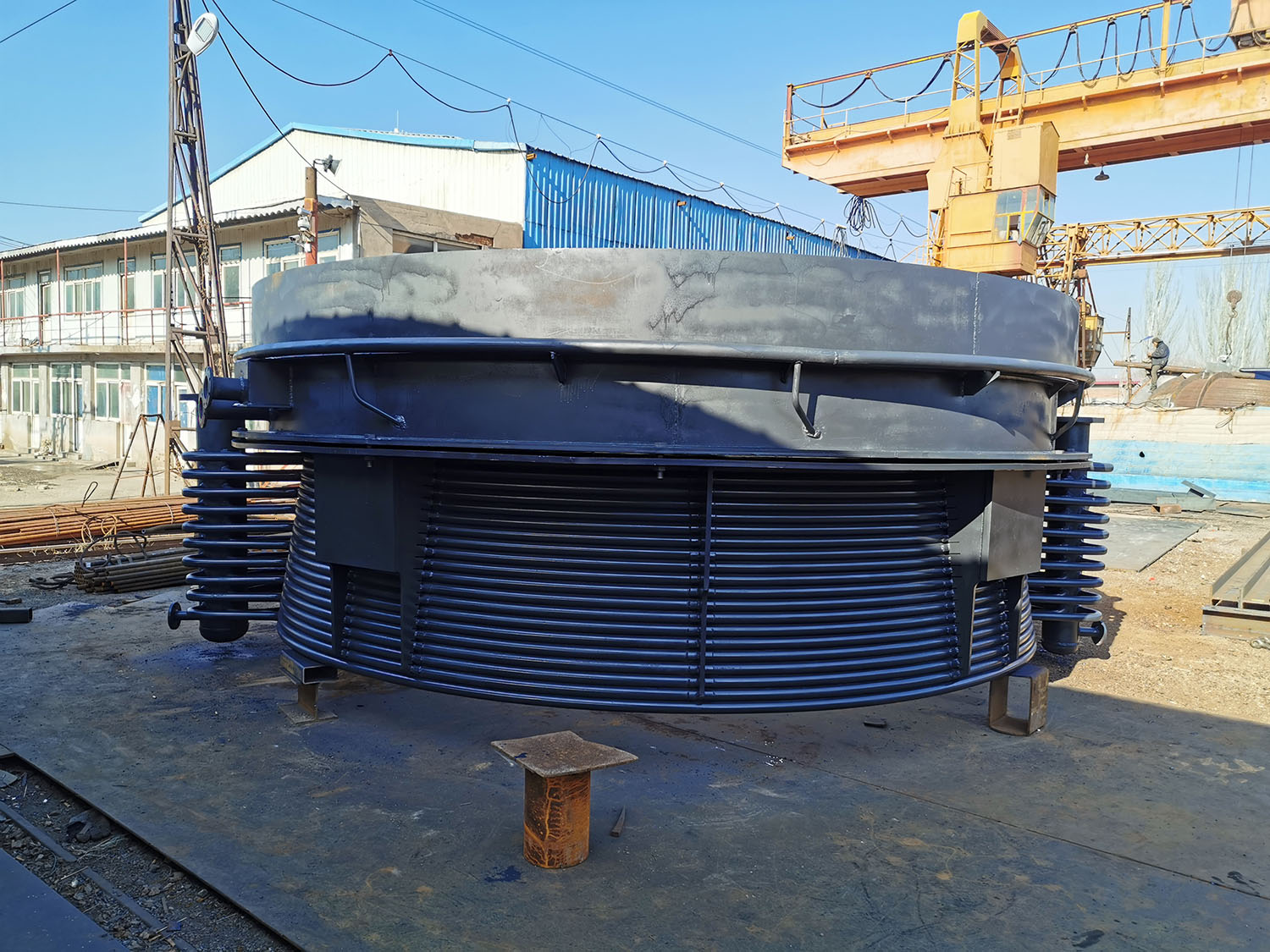 轉(zhuǎn)爐活動(dòng)煙罩的主要作用就是能夠上下升降,以保證煙罩內(nèi)外氣壓大致相等,既避免爐氣的外逸惡化爐前操作環(huán)境,也不會(huì)吸入空氣而降低回收煤氣的質(zhì)量,因此在吹煉各階段,煙罩能調(diào)節(jié)到需要的間隙。吹煉結(jié)束出鋼、出渣、加廢鋼、兌鐵水時(shí),煙罩能升起,不妨礙轉(zhuǎn)爐傾動(dòng)。當(dāng)需要更換爐襯時(shí),活動(dòng)煙罩又能平移開(kāi)出爐體上方。 轉(zhuǎn)爐活動(dòng)煙罩按結(jié)構(gòu)不同分閉環(huán)式(氮幕法)和敞口式(微壓差法)兩種。閉環(huán)式活動(dòng)煙罩的特點(diǎn)是煙罩下部裙罩口內(nèi)徑略大于水冷爐口外徑,降罩后的最小縫隙約50mm左右,通過(guò)向爐口與煙罩之間的縫隙吹氮?dú)饷芊鈦?lái)隔絕空氣。